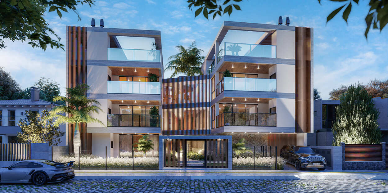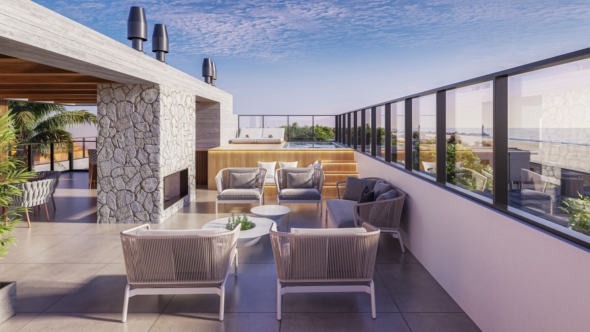 Residencial multifamiliar próximo ao mar, com arquitetura contemporânea e volumetria em blocos interligados. O uso de brises, madeira e amplos vãos envidraçados cria leveza, privacidade e integração com a paisagem litorânea.